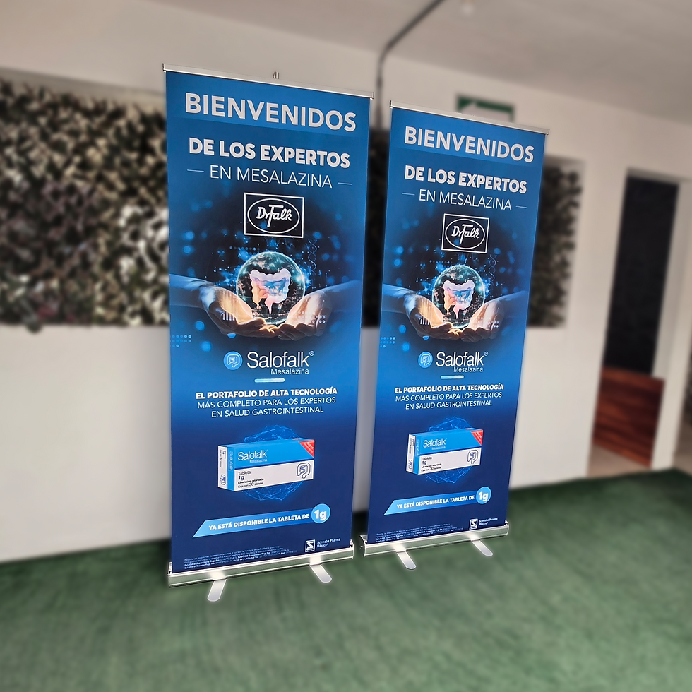 Es una estructura retráctil con una gráfica impresa de alta calidad que se despliega en segundos, su diseño portátil y fácil armado lo convierte en una herramienta efectiva para destacar mensajes, promociones o identidad visual con gran impacto.