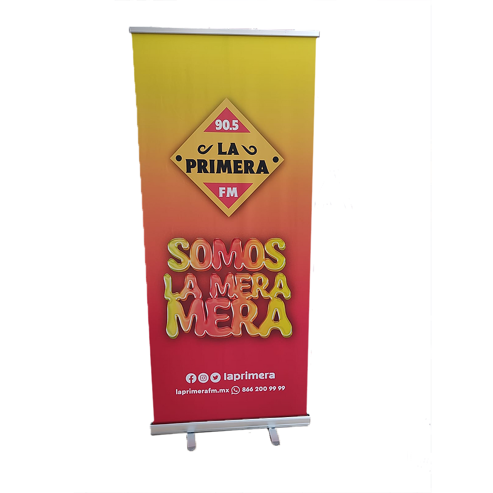 El ROLL UP es una estructura portátil de aluminio con impresión en lona o tela